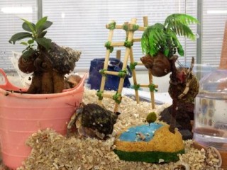 ヤドカリたちの小屋のお掃除をしました。